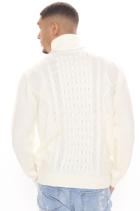 Miguel Cable Knit Turtleneck Sweater White Fashion Nova Mens Sweaters Fashion Nova